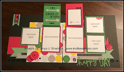 For those not attending the Chantilly Scrapbook Expo, you can still purchase this "wonderful" layout in my In All Sassiness Shop. Just click here and you will be directed to my shop. The kit includes everything needed to create the layout: all needed pieces are pre-cut, and stamped, includes the embellishments, flip flaps, flowers, detailed instructions and a color photo to guide you through the creating process.