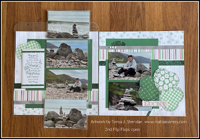 Here is the layout complete with photos. You might note that I opted not to journal on this layout - that is true. This is the second layout in a set of two layouts of the same event and the journaling is on the other layout. For those creating this layout, you could add journaling inside one of the flip flaps if desired.